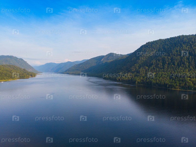 Телецкое озеро в горах Алтая, Сибирь, Россия. Снято с дрона. Красота летнего дня