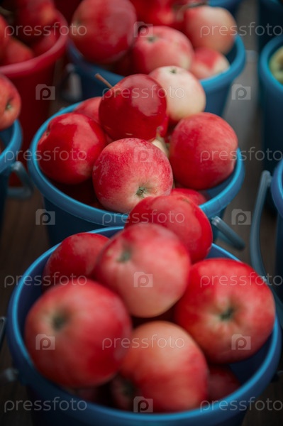 Ведро свежесобранных органических яблок. Концепция сбора урожая