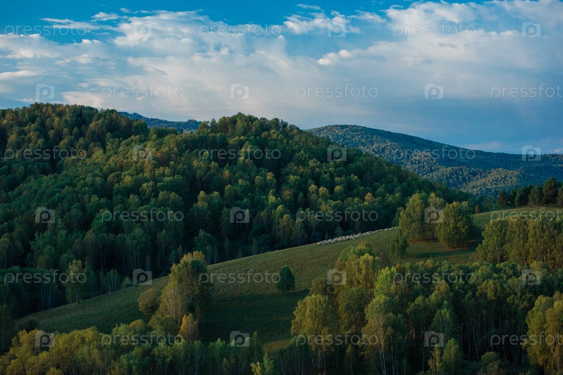 Стадо овец в горах Алтая