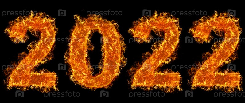 Год 2022 огненный текст на черном