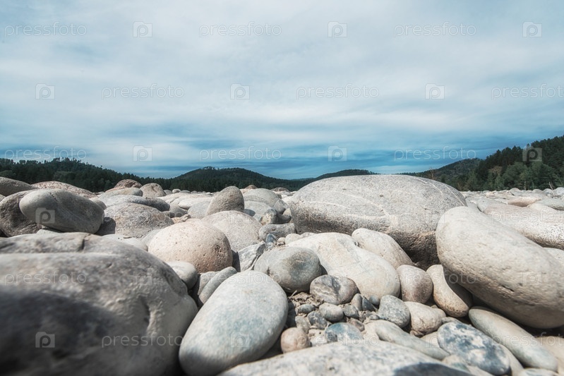 Крупный план камней на реке Катунь, в горах Алтая, Сибирь, Россия