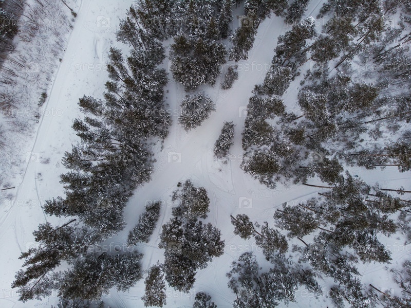 Вид с воздуха на зимний сибирский лес