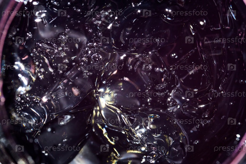 Косметический гель в черной банке крупным планом. Прозрачный гель с текстурой и пузырьками