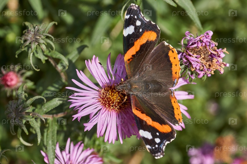 Бабочка-адмирал дневная бабочка семейства нимфалидов (Nymphalidae), собирающая нектар из цветов