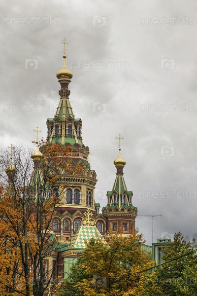 Петергофский собор Святых Апостолов Петра и Павла с осенними деревьями