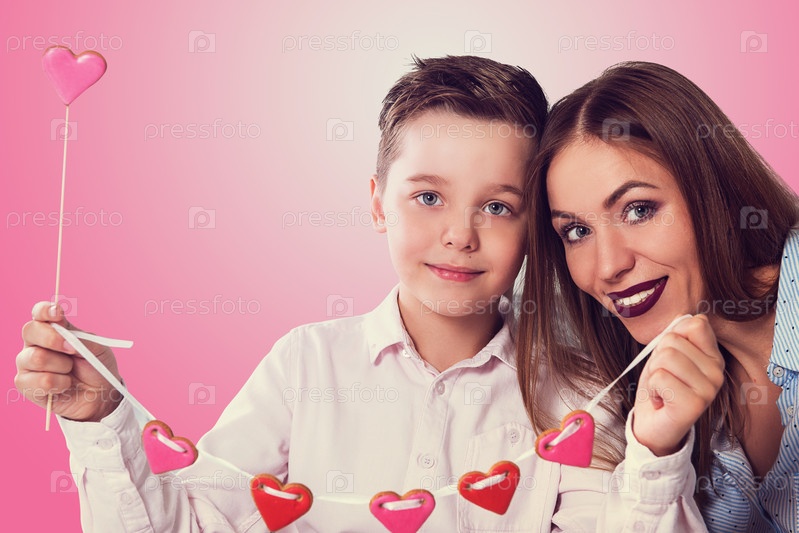 С Днем Святого Валентина, Днем Матери или Женским 8 Марта. Мальчик проводит время со своей мамой и празднует это