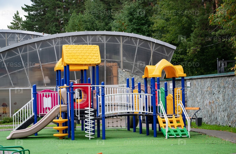 Красочная детская игровая площадка в зеленом парке