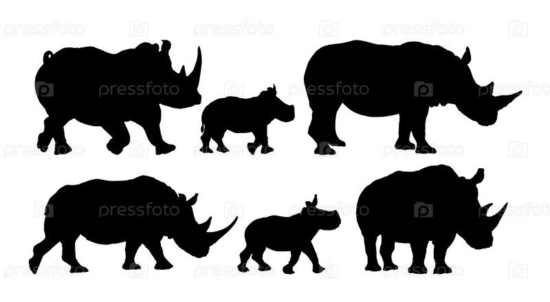 Набор силуэтов больших носорогов