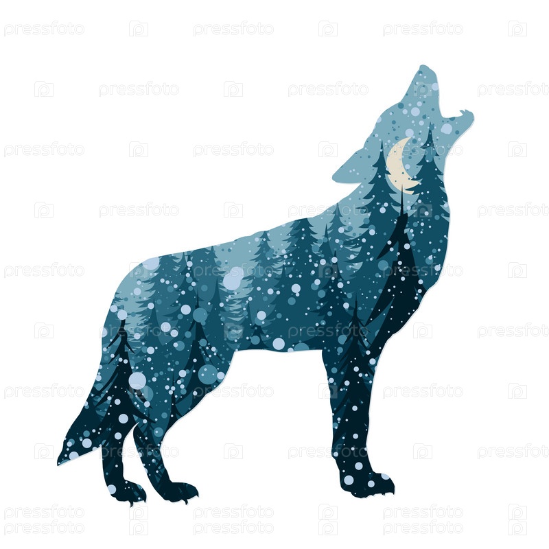 Силуэт волка с зимним лесом