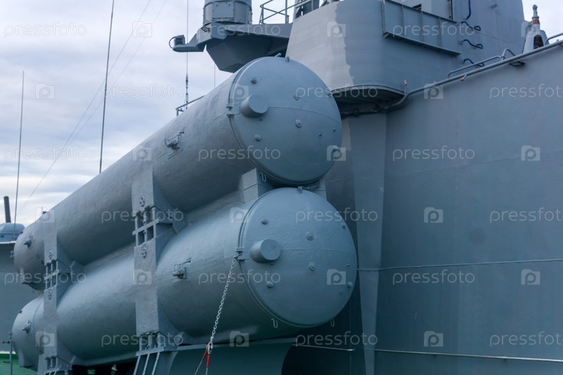 Военно-морской фон, концепция, фрагмент современного военного корабля с контейнерами для ракетных установок