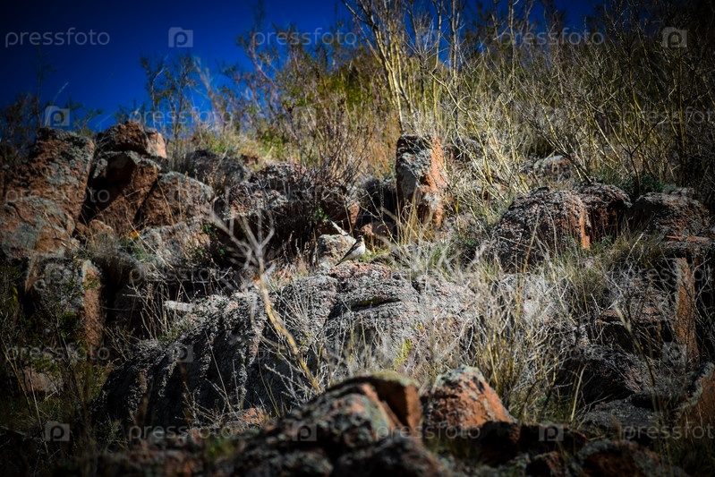 Древние горы Хакасии. Сахсыр. Птица на камнях