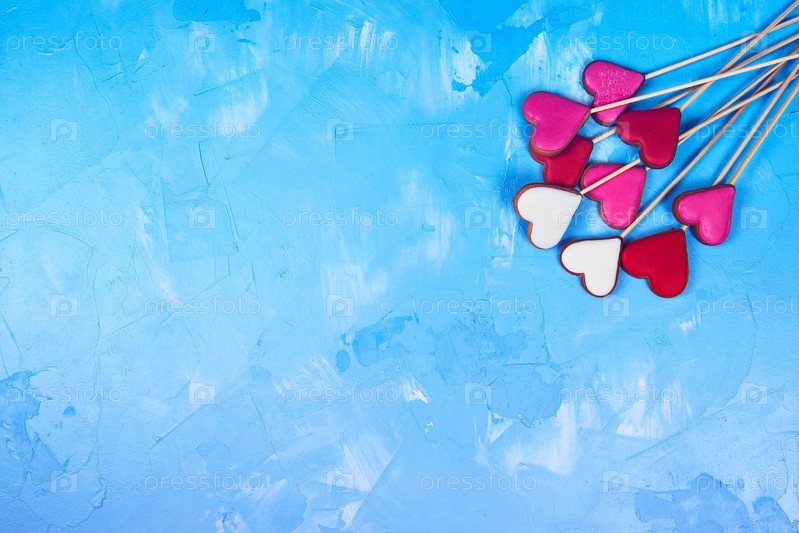 Пряники на День святого Валентина или свадьбу на синем бетонном фоне