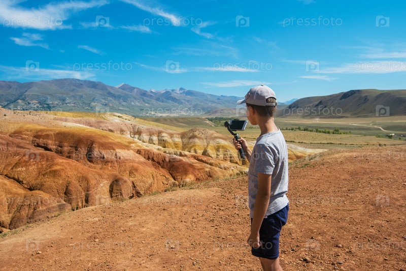 Мальчик в долине Марса, пейзажи в горах Алтая, Кызыл-Чин, Сибирь, Россия