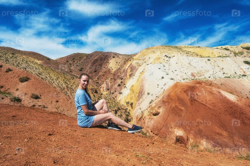 Женщина в долине Марса, пейзажи в горах Алтая, Кызыл-Чин, Сибирь, Россия