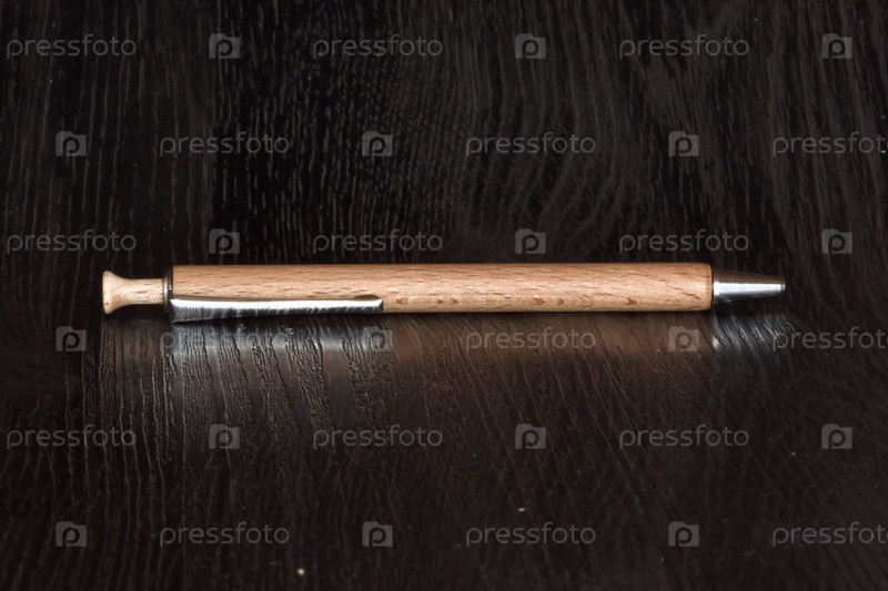 Шариковая ручка из дерева на темной поверхности стола