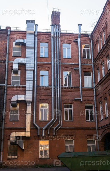Промышленный архитектурный фон, фасад старинного здания старой фабрики