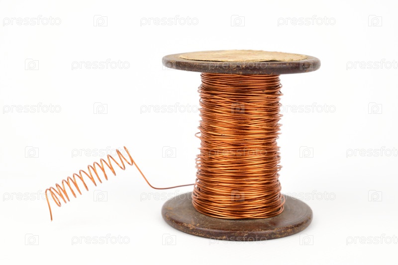 Катушка с медной проволокой, конец которой скручен в спираль