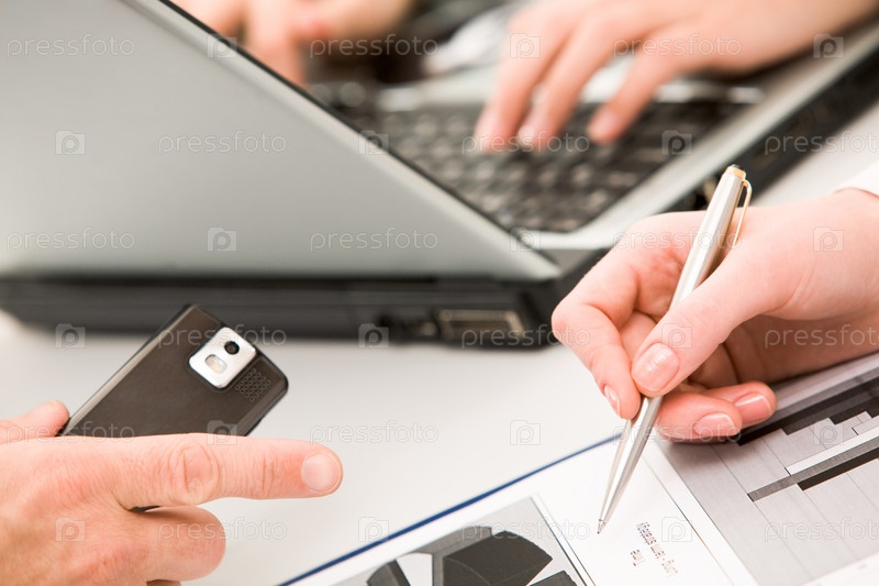 Вид выше на руки деловых людей, работающих с документами на брифинге