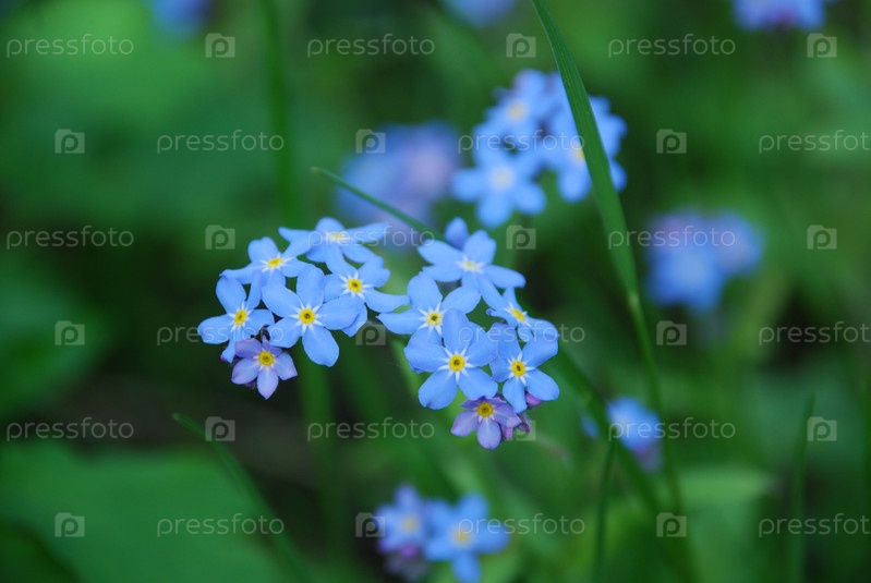 Болото незабудки среди зелени