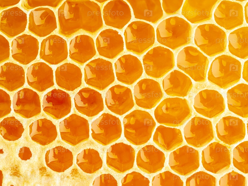 Пчелиные соты крупным планом, свежий тягучий капающий сладкий мед, макро фон