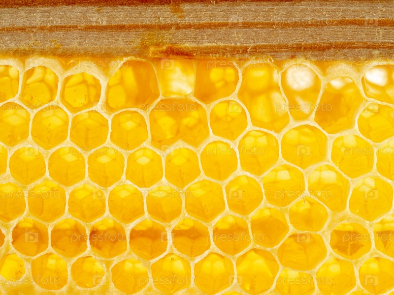 Пчелиные соты крупным планом, свежий тягучий капающий сладкий мед, макро фон