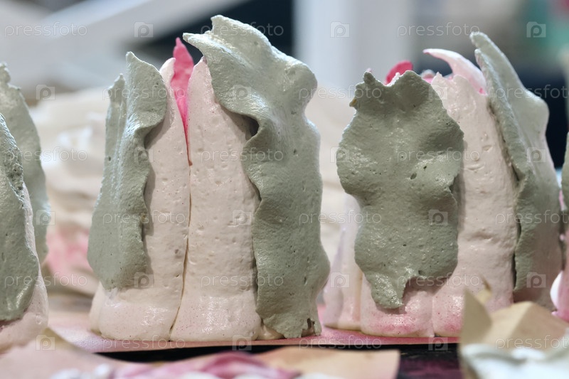 Ярко-розовые тюльпаны из зефира. Цветы из зефира. Разложены на поверхности стола