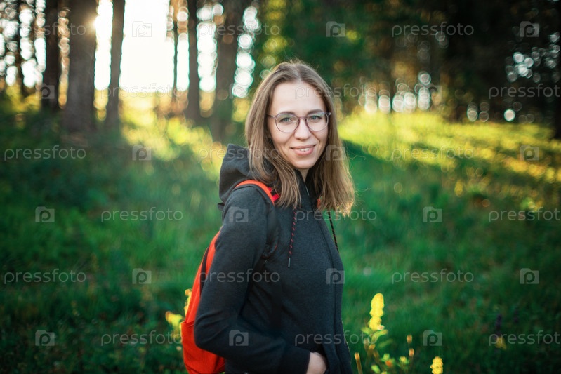 Здоровый образ жизни женщины, идущей в горах в летней лесной зоне