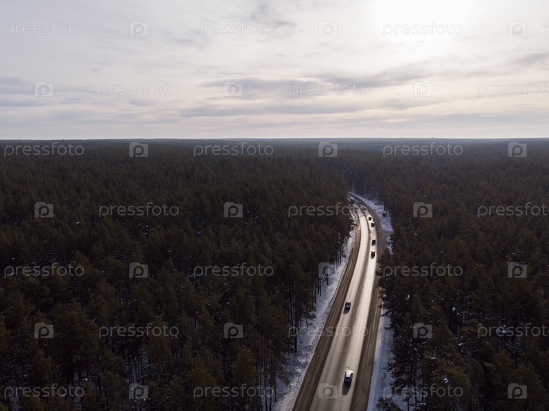 Вид с воздуха на дорогу в зимнем пейзаже
