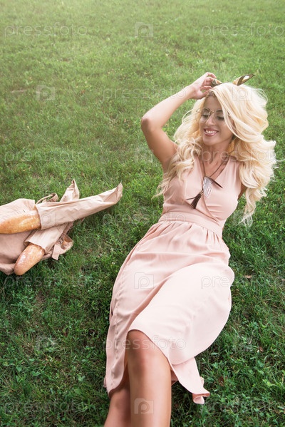 Отдых в парке, на свежем воздухе, люди и концепция досуга - красивая блондинка, молодая женщина, отдыхающая в парке