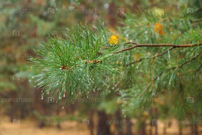 Капли дожды на сосновой ветке