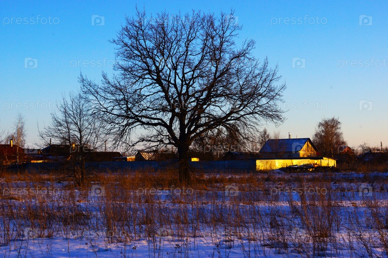 Зима Кроны дерева в закатном свете