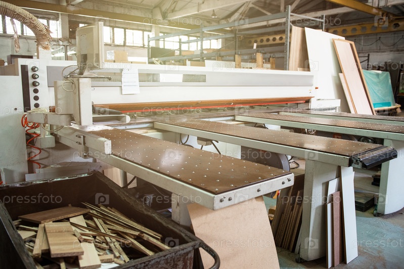 Производство деревянной мебели. Промышленный отрезной станок для автоматической резки древесины