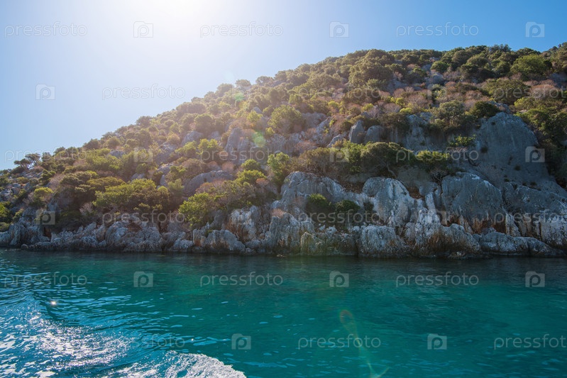 Море, недалеко от руин древнего города на острове Кекова, Турция