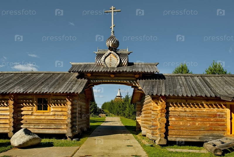 Московская область. Россия. 27 сентября 2023 года. Уникальная архитектура православного деревянного комплекса у святого источника Гремячий Ключ