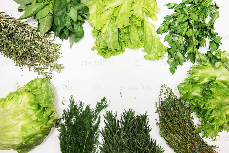 Различные виды свежих садовых трав