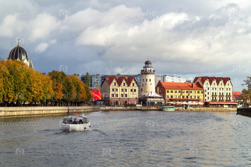 Калининград, Россия - 2022, 12 октября: Старый город. Рыбная деревня - этнографический и торгово-ремесленный комплекс