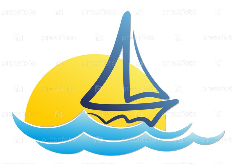 Логотип парусника в море с рассветом солнца