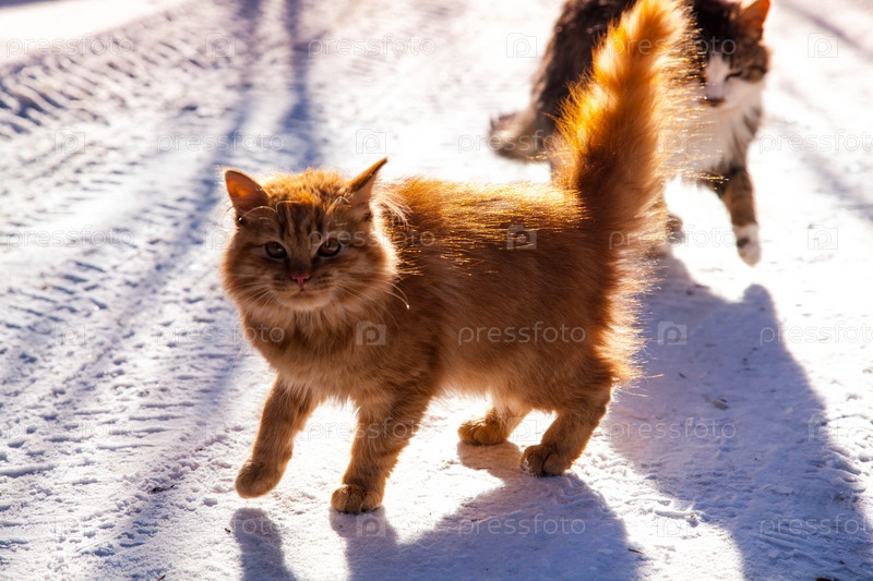 Рыжий котик зимой