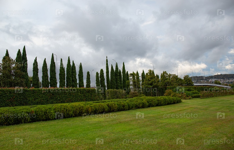 Зеленая изгородь из растений в Сочи-парке в городе Адлер летом
