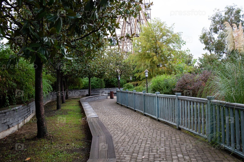 Дорожка в парке с зеленой травой и деревьями на заднем плане в Сочи Парке в Адлере