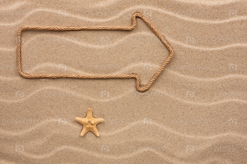 Указатель из веревки и ракушки на песке