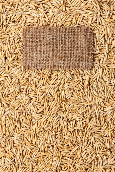 Бирка из мешковины лежит на фоне овса