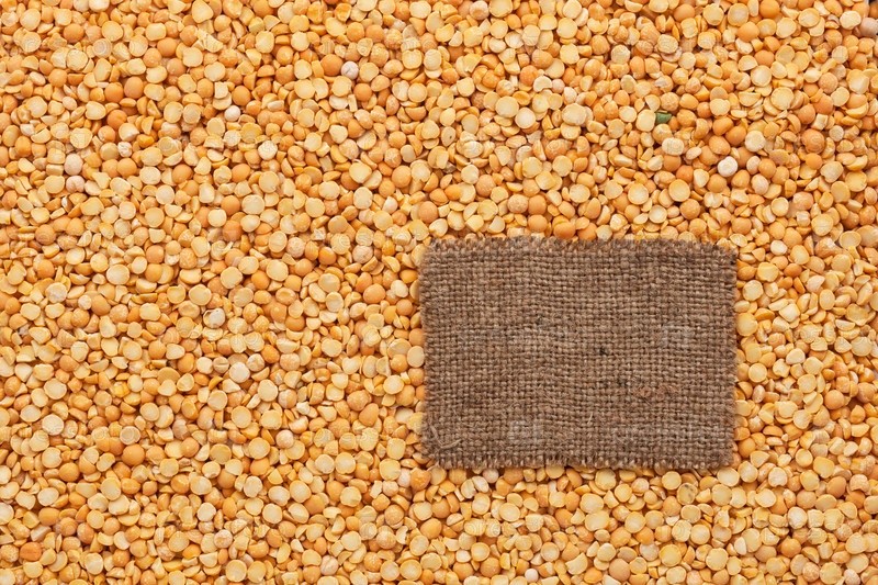 Бирка из мешковины лежит на фоне гороха