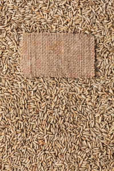 Бирка из мешковины лежит на фоне ржи
