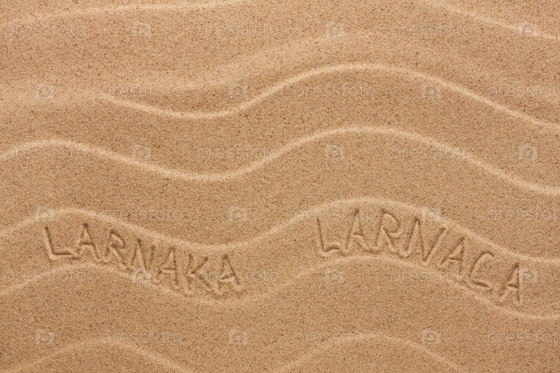 Надпись Ларнака на волнистом песке