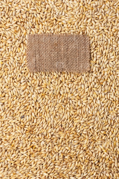 Бирка из мешковины лежит на фоне ячменя