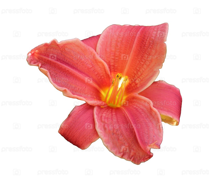 Красная лилия, цветок лилейника - изолят на белом фоне