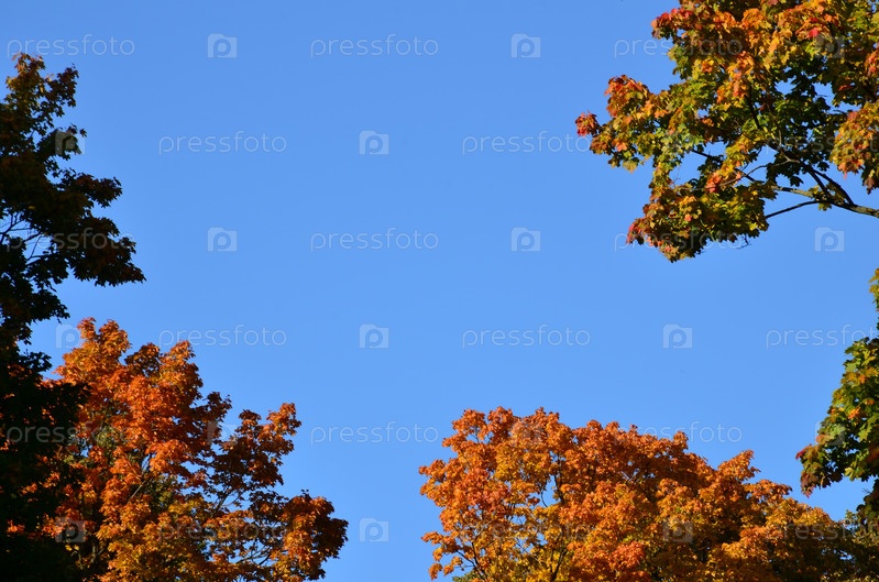 Яркая осенняя листва клена на фоне голубого неба: фоновое изображение