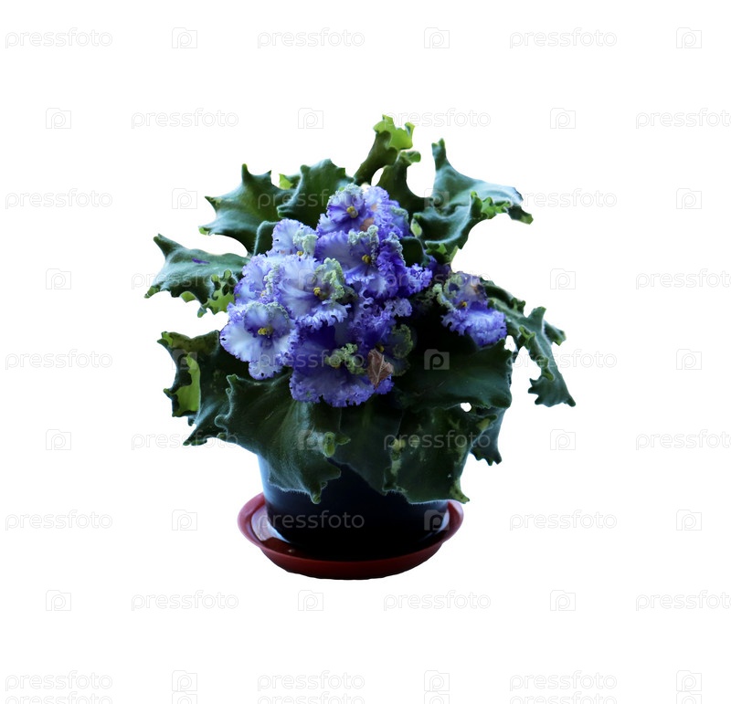 Голубые цветы фиалки в горшке - изолят на белом фоне