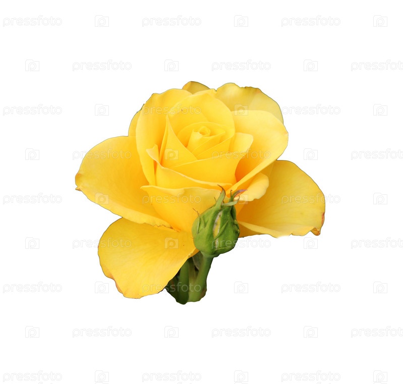 Желтая роза с бутоном - изолят на белом фоне